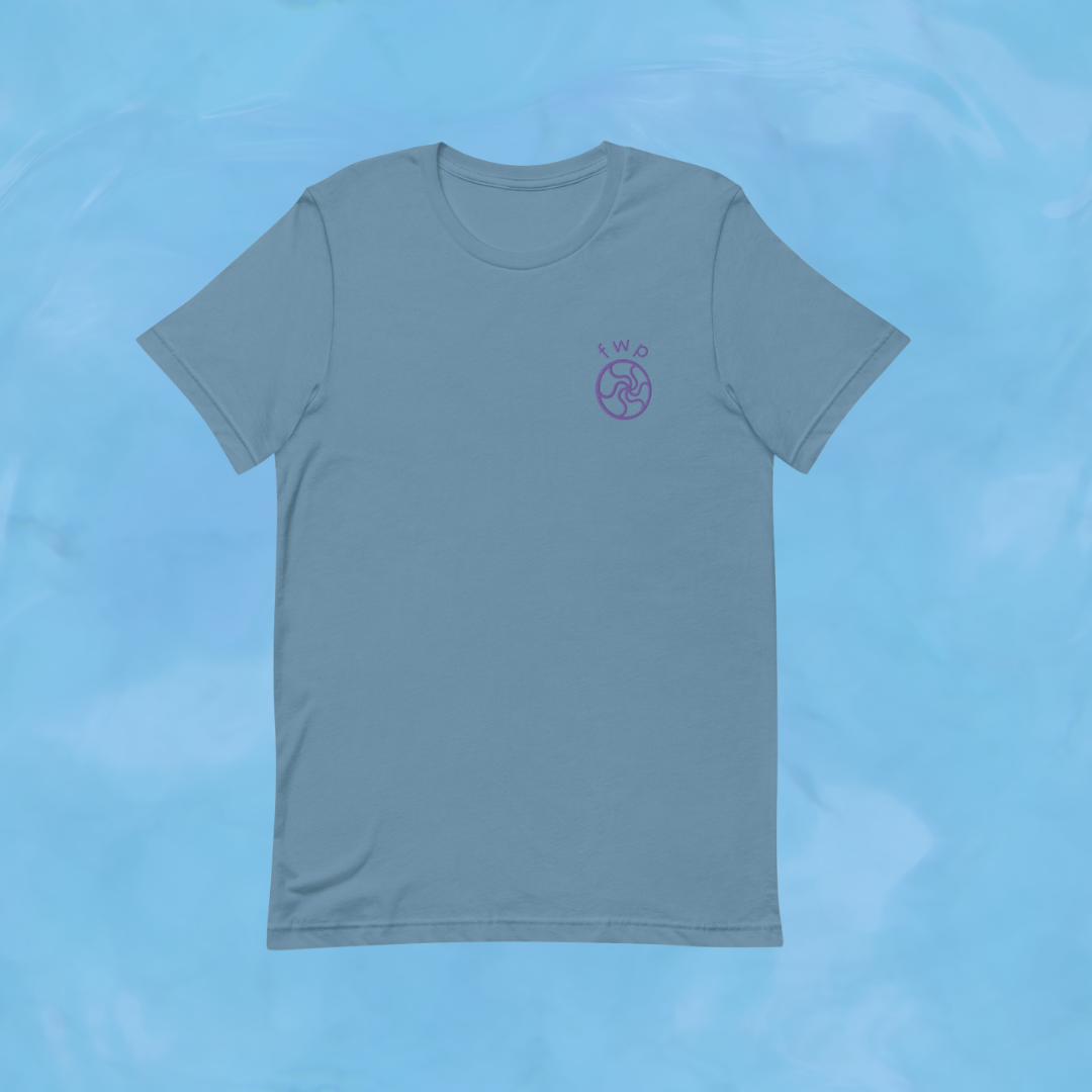 a soft lightweight tee to rep your favorite queer press. available in steel blue. embroidery color is purple.