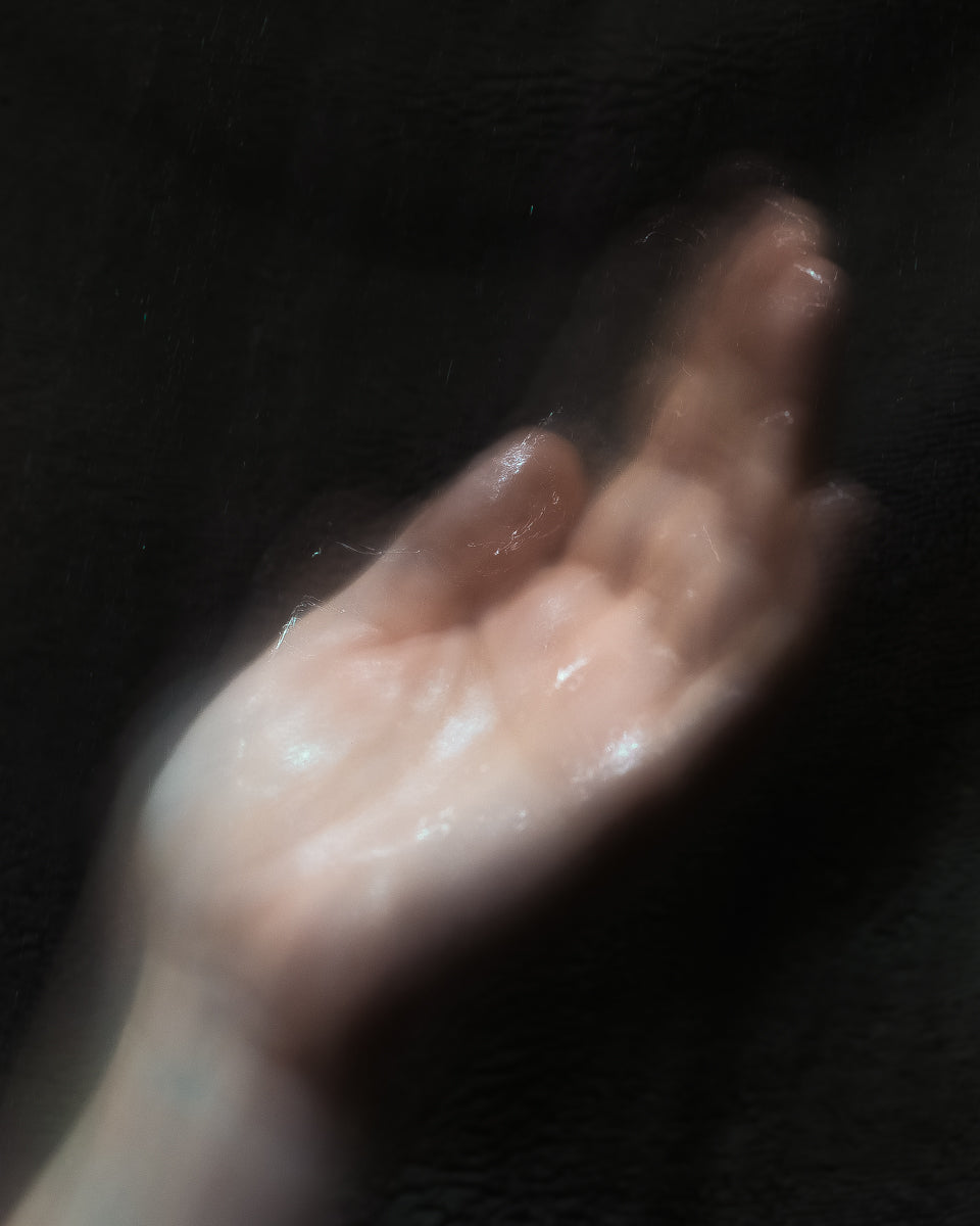 From the artist: "Why do grief, love, desire, restraint, control, sex, and disgust all fill the same space. I can’t separate them and they converge in my body, unconsciously, waiting to knock, for when my thoughts still. GLARE is used as a link between the intangible past and present through photographic motifs. I revolve around certain words and how they can function to have several meanings, like ‘inversion’ being an outdated term for homosexuality but a current term for a reversal, or ‘glare’ being light reflection or an intense stare. The multiple implications of words becomes the basis for constructing a visual narrative from a queer perspective. Reflecting vs Reflection, Glance vs Glare. As intangible, light-based concepts, they analyze how ‘inversion’ and ‘glare’ can be used to weave between a constructed reality and a lived experience. Caught between two worlds– dreaming and awakeness– I wrote GLARE to untangle why death, sex, grief, and love seem to all twist together at night."