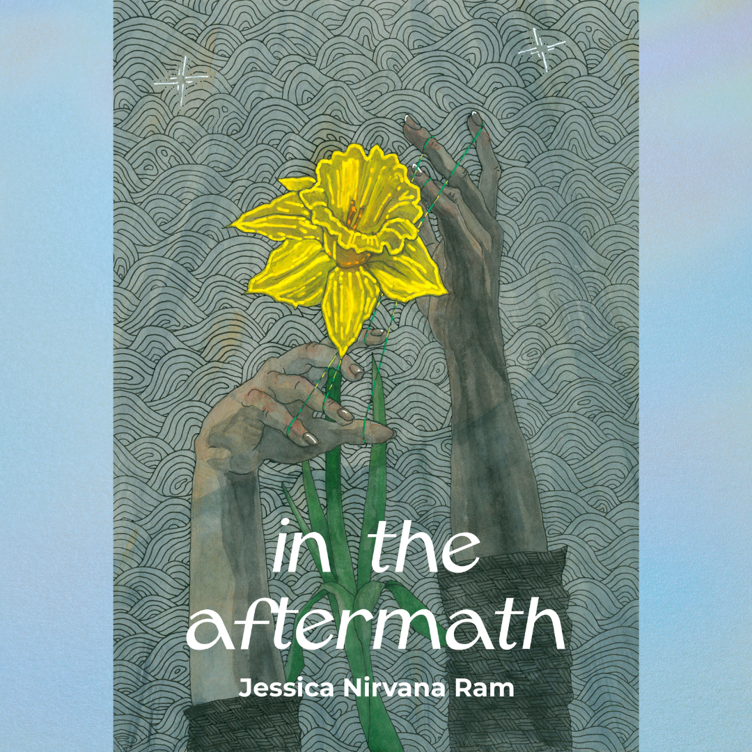 "We know the power of poetry in the wake of unimaginable loss, and with her signature lyrical warmth, Jessica Nirvana Ram amplifies it tenfold. in the aftermath reveals to us the particular alchemy that comes from adorning your grief with tenderness and levity. With disciplined, tight lines, Ram invites us to partake of sunny river afternoons streaked with pink hair dye and french fry grease. As the speaker recalls her beloved college companion, she reckons with the im/materiality of grief like “a quiet child tugging at the hem of [her] shirt.” These poems affirm how the written word allows us to immortalize, forever preserving plates of eggplant parm and late night chats in an idling car. In this tribute, Emma stays with us, twirling forever in a yellow circle skirt." —Rita Mookerjee, author of False Offering