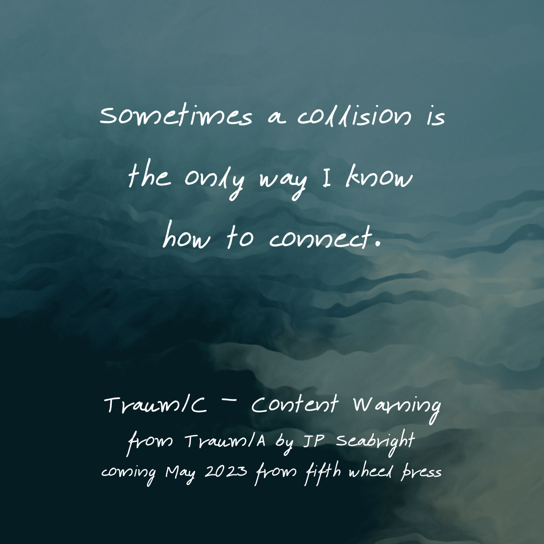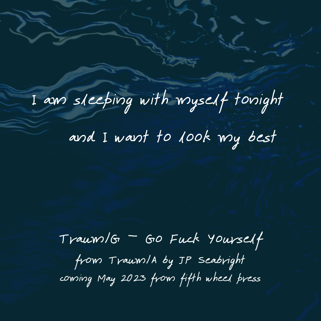 “In the opening piece of JP Seabright’s latest collection, Traum/A, they remind us that the majority of that word, “traum,” is the German one for “dream.” And much like a dreamscape, Seabright voices the similarly full and startling spectrum — with all its whimsical leaps, impossible juxtapositions, and unpredictable returnings — that is the experiencing, reexperiencing, processing, and retaining of trauma. Seabright’s language and form within this experimental abecedarian hybrid work explores the strange territory woundedness forges between the conscious and subconscious where the brain sometimes stops making logical sense and courts another type, one that tells us the truths we may not want to hear in ways we understand all too well. “There are too many words there are no words,” Seabright writes and rewrites in “there is a hole in the centre of everything,” in just one of many paradoxical yet wholly accurate embodiments — and em-mind-iments — of the survivorship experience in this chapbook that will leave you entranced.” —Raegen Pietrucha, author of Head of a Gorgon and An Animal I Can’t Name, winner of the 2015 Two of Cups Press Prize