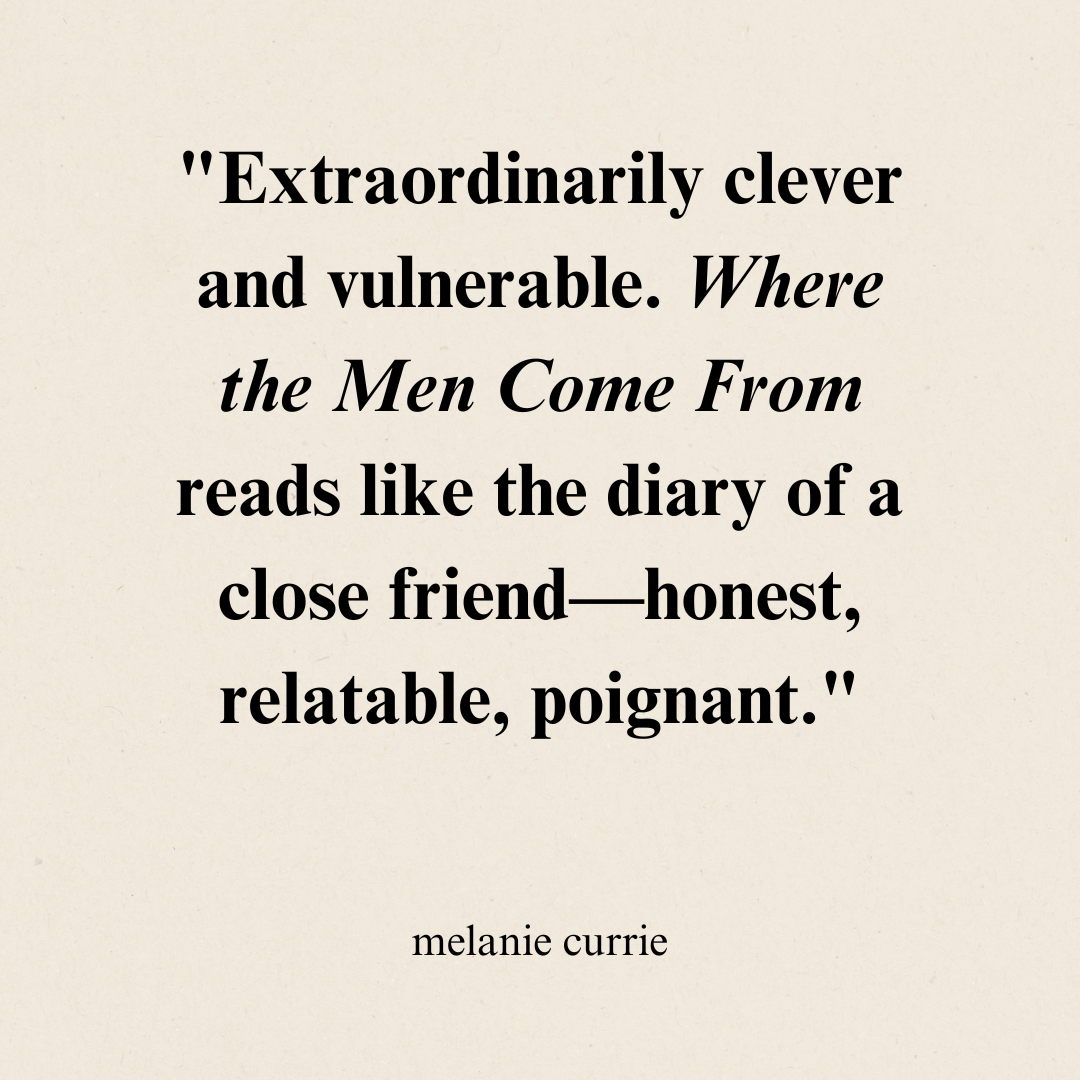 “The confounding predicament of Where the Men Come From is that it turns you ravenous, desperate for all of it at once; and yet, it demands to be taken in little bites, savored for every last scrap of sorrow.” —@natashawritesbooks (IG)